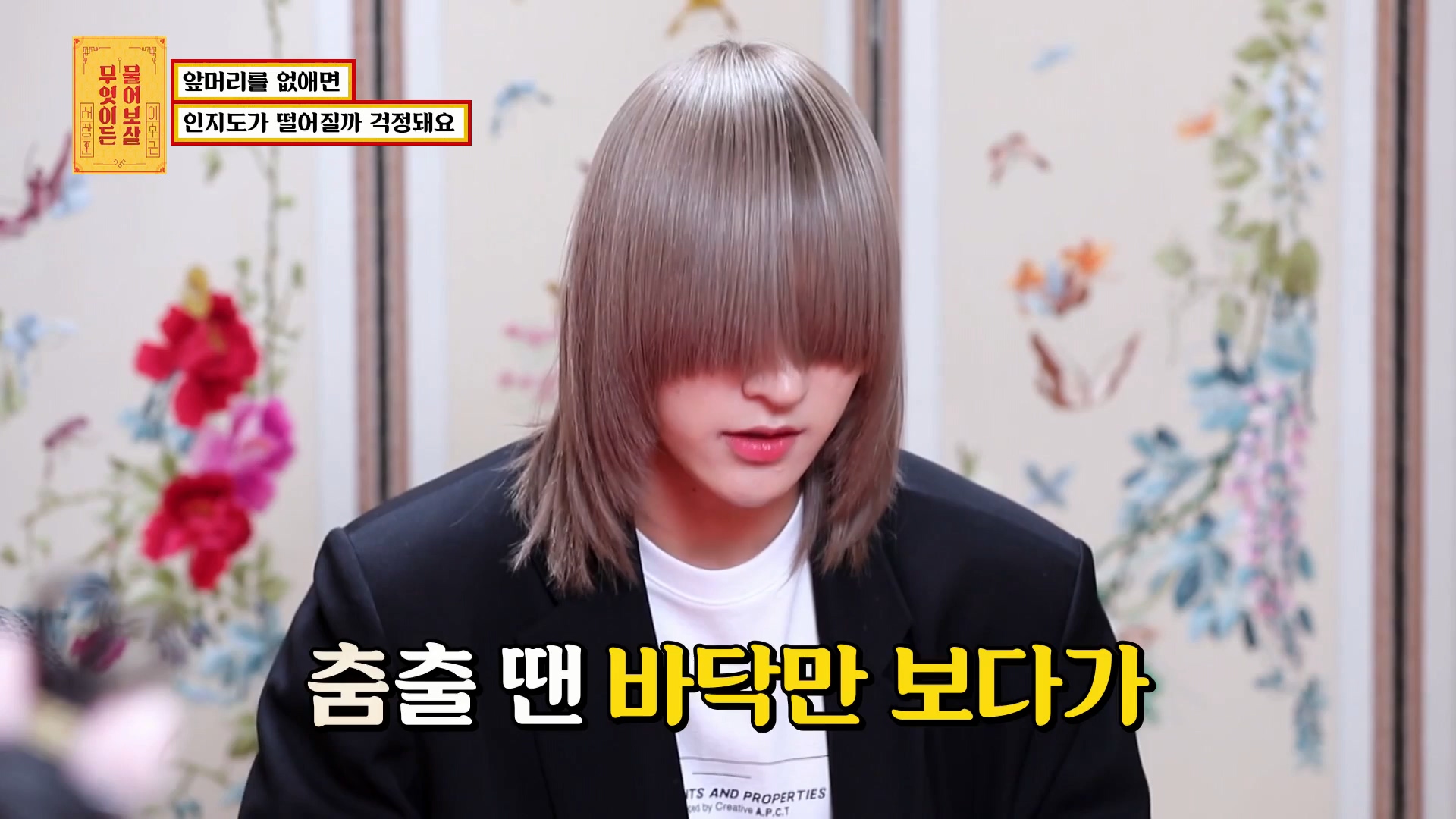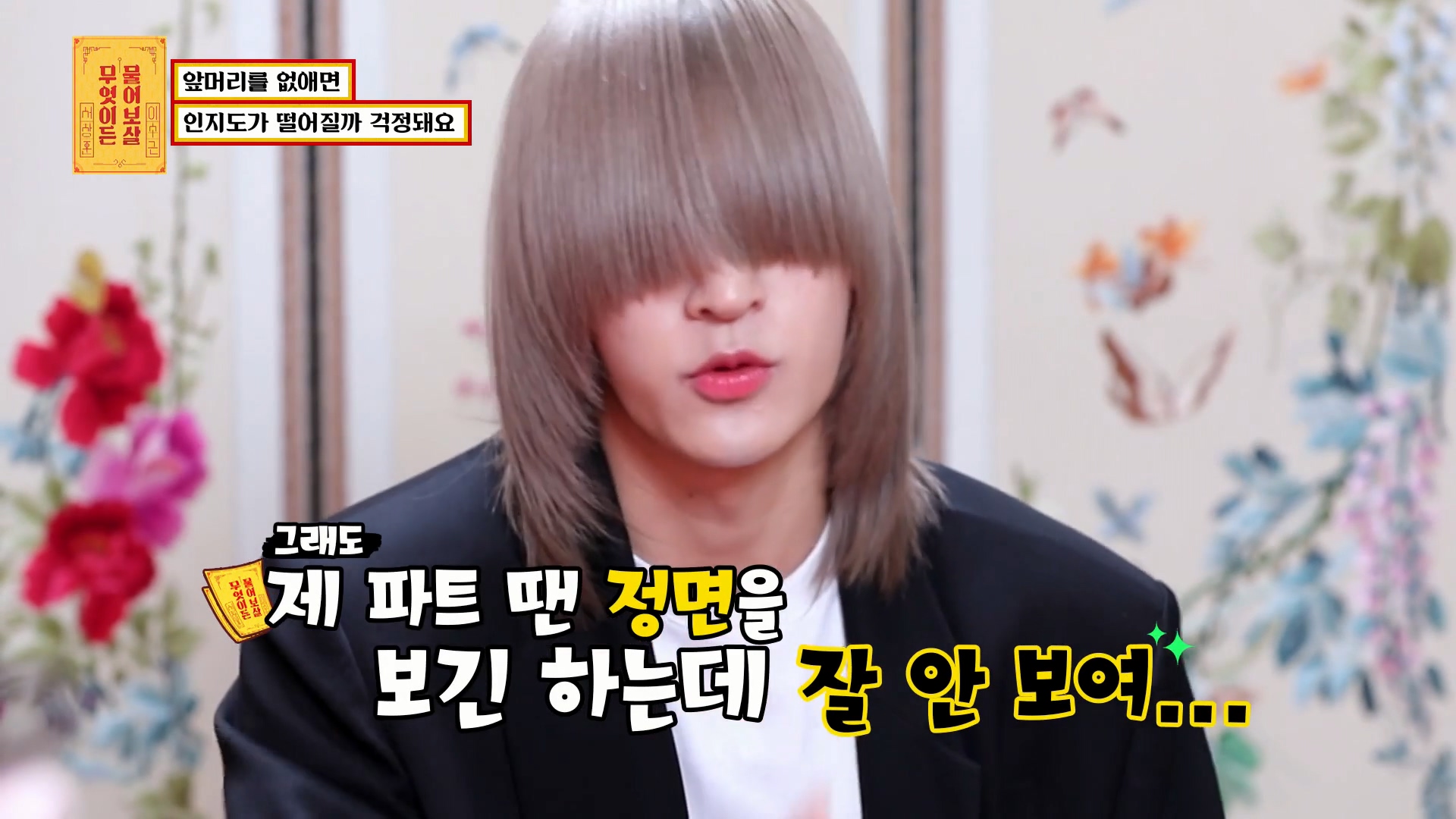 머리 때문에 앞이 잘 안 보이지 않아 멤버들이 손을 잡아줄 정도로 불편이 심하다는데요. 심지어 준지는 안무 중에도 앞이 보이지 않아 바닥만 보고 있고, 엔딩에서만 정면을 바라보는데 정말 답답하다고 심정을 토로했습니다. 이쯤되면 맨 얼굴이 궁금해지는데요. 앞머리를 없앤 준지의 모습은 상당히 잘생겼었습니다. 서장훈과 이수근도 그의 외모를 칭찬하며 가운데라도 열고 있도록 했습니다.